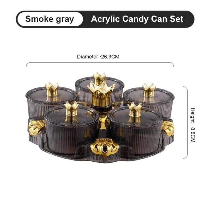 1. Design: Royal-themed with gold crown lids and ribbed amber/green containers.