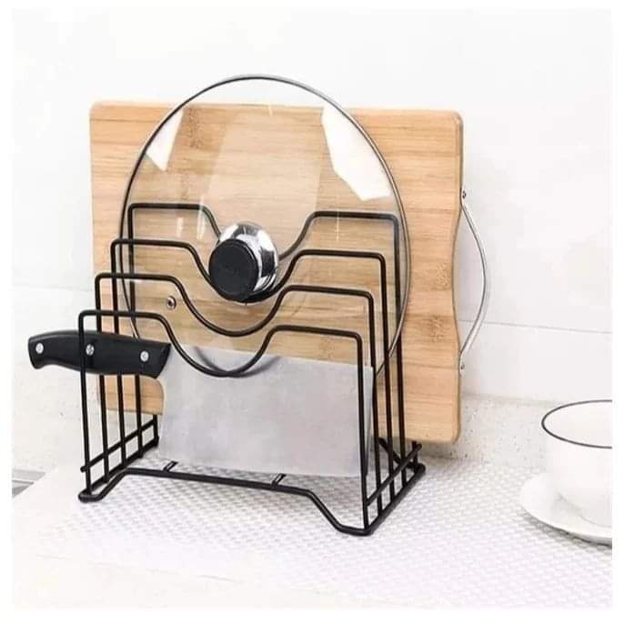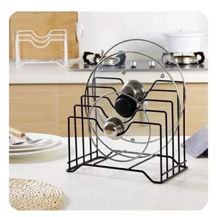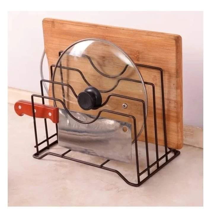 This cookware organizer rack has smooth and burr free surface,won't harm the skin and provide a good hand feeling. Size: 25*16.5*22cm.