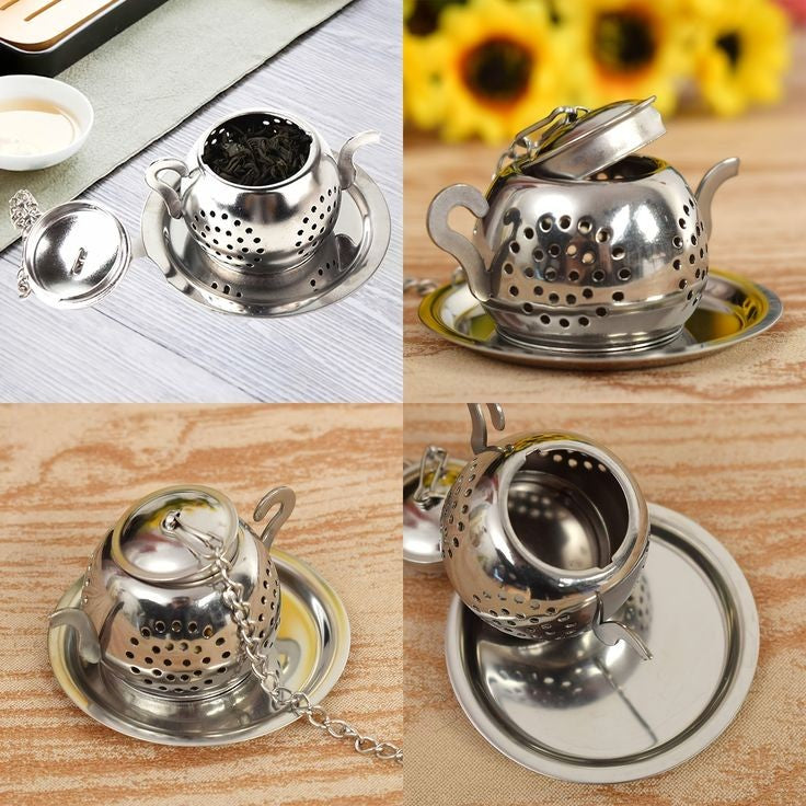 Lovely teapot,shaped infuser looks amazing, your families and friends will love it. The extended length chain comes with an easy to connect open mouth hook and weighted medallion to hold it in place. You can easily set the infuser your desired optimal height. The attached hook lets the ball hang from your teapot or panhandle and is easily removable when your herbs have fully steeped.