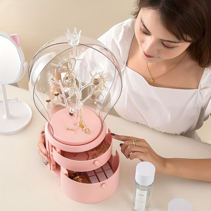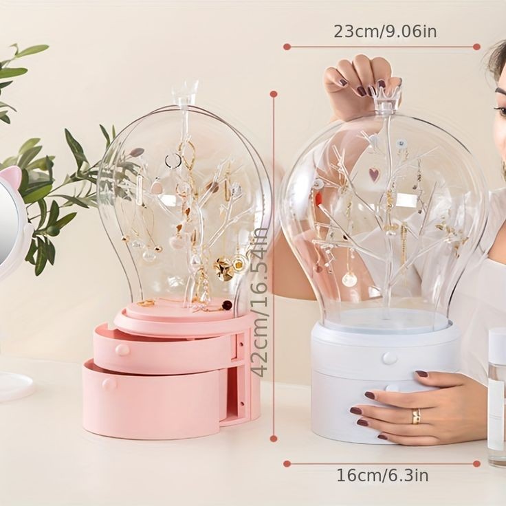 It is a very creative jewelry and makeup storage box with stylish transparent bulb shape.