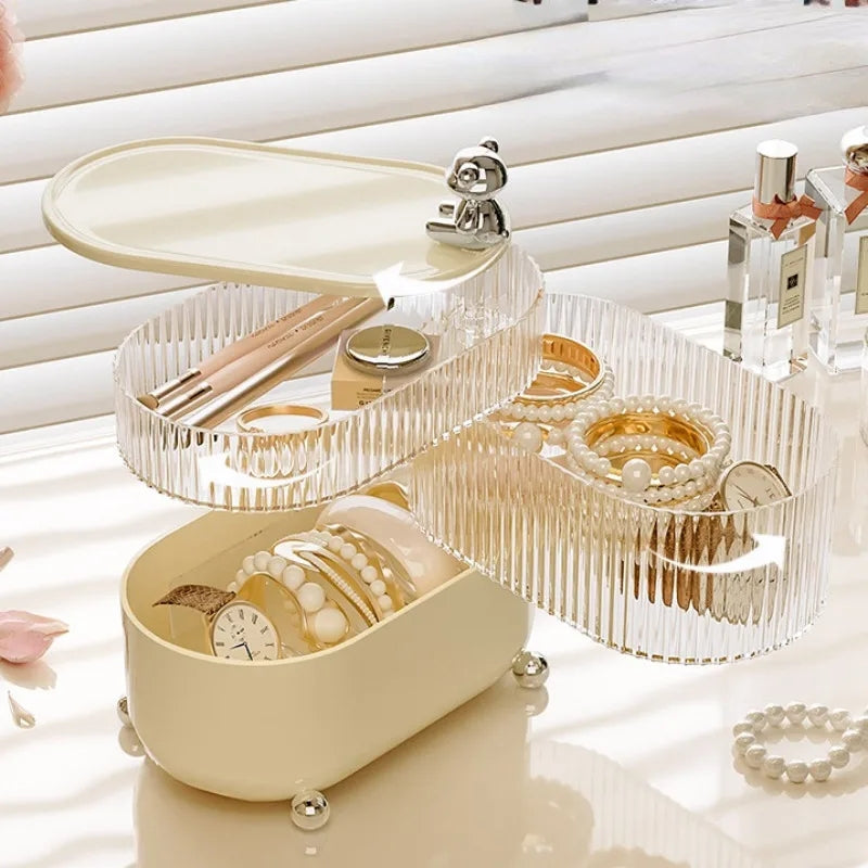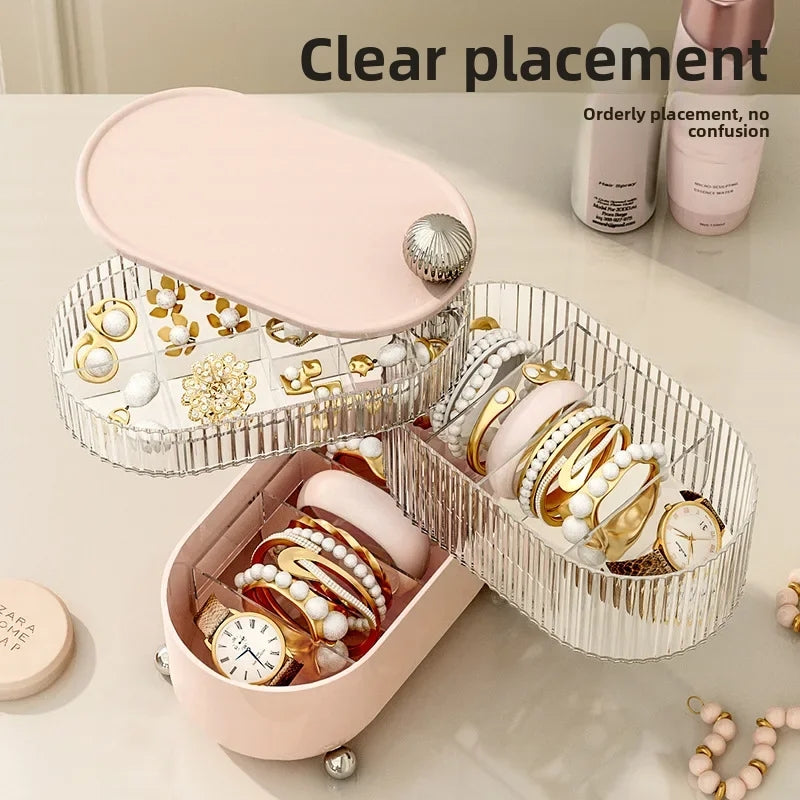 The cosmetic storage box comes with removable independent compartments to protect rings, earrings, necklaces, bracelets, hair accessories, watches and other small items.
