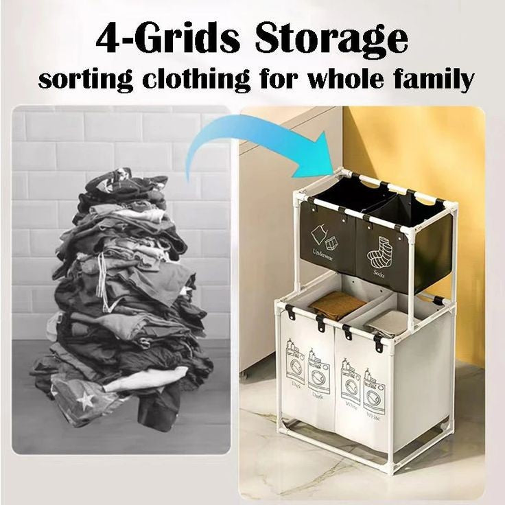VERSATILE : This laundry sorter basket helps you to organize laundry effortlessly, allowing you to sort underwear, socks, dark, and white conveniently, streamlining your laundry routine by pre-sorting clothes as they accumulate, making laundry day a breeze. Not just for laundry. Use it for storing toys, sports equipment, or other household items to keep your space tidy and organized. Besides, its sleek design complements any decor, enhancing the aesthetics of your laundry area