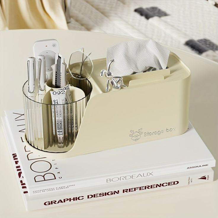 Efficient Organization : Keep your desk clutter-free with our tissue storage box that features multiple storage compartments to categorize and store pens, remote controls, and other small items, ensuring an organized work environment.