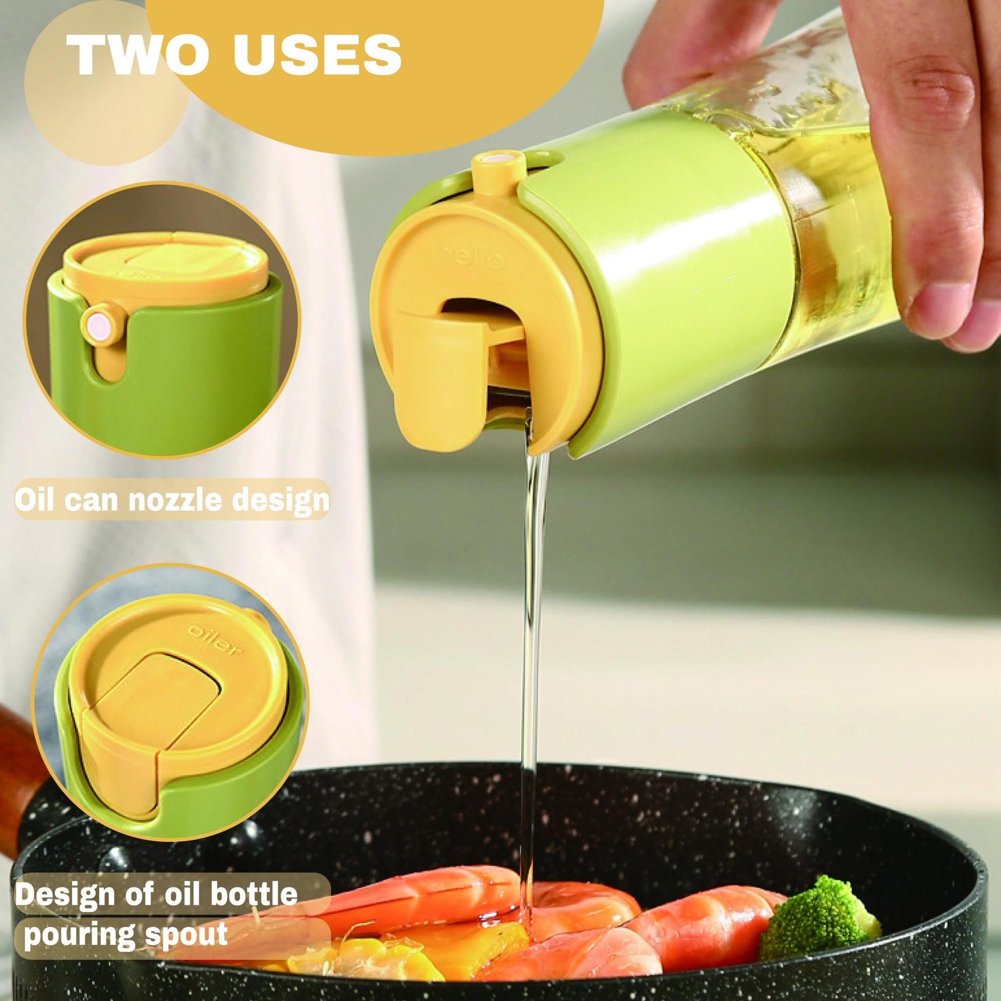 2-in-1 Glass oil sprayer and Dispenser_ This olive oil dispenser features both pouring and spraying capabilities, making it a versatile solution for your kitchen needs. Easily switch between two functions to keep your kitchen clean and efficient.
