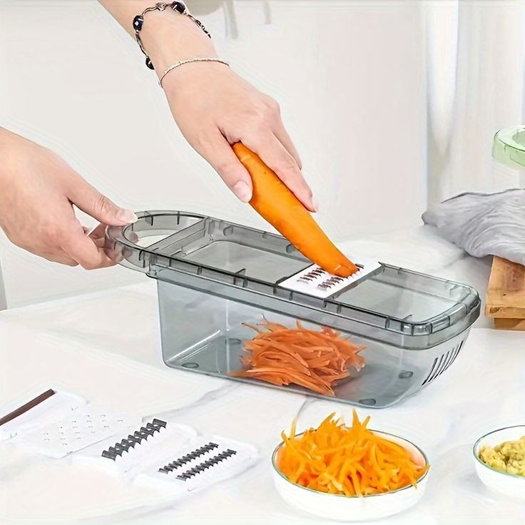 1. Multiple Functions : Meet a variety of needs in the kitchen with this grater and vegetable cutter; its multifunctional design allows it to be used for slicing, dicing, and more, handling a variety of ingredients with ease using a variety of cutters