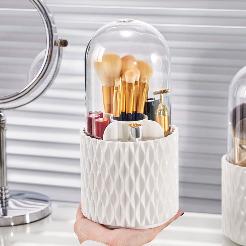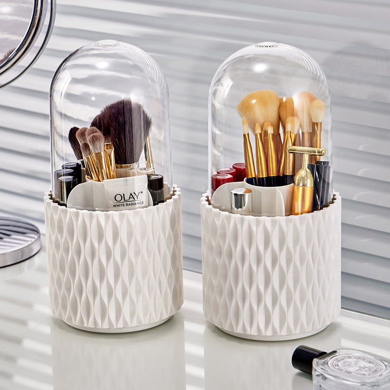 and dustproof cover. It stores lots of brushes, save your drawer and vanity from