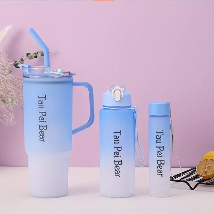 🔸One large 1.2 liter with straw, 800ml tight seal lid with clip, and a smaller 300ml screw top container.