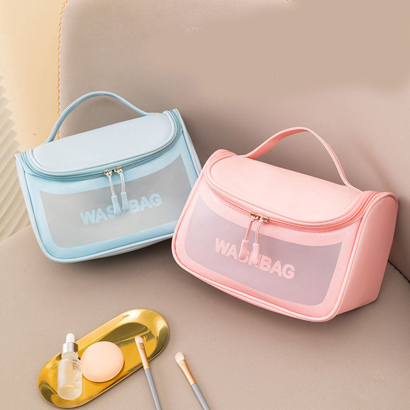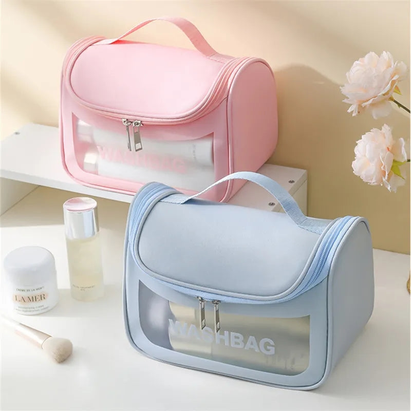 Cosmetic Bag Waterproof Large Capacity Smooth Zipper Portable with Handle Strong Load Bearing PVC Half Transparent Travel Toilet