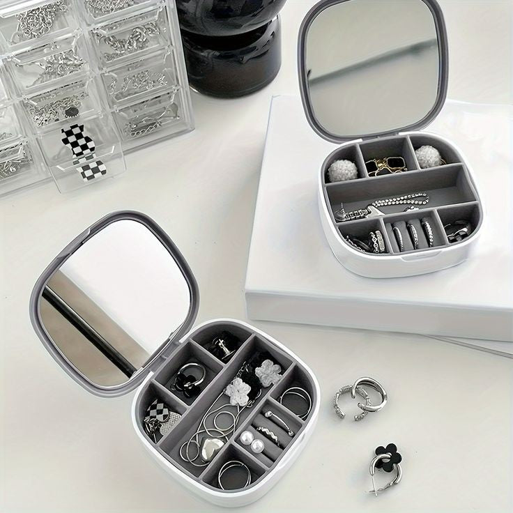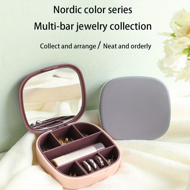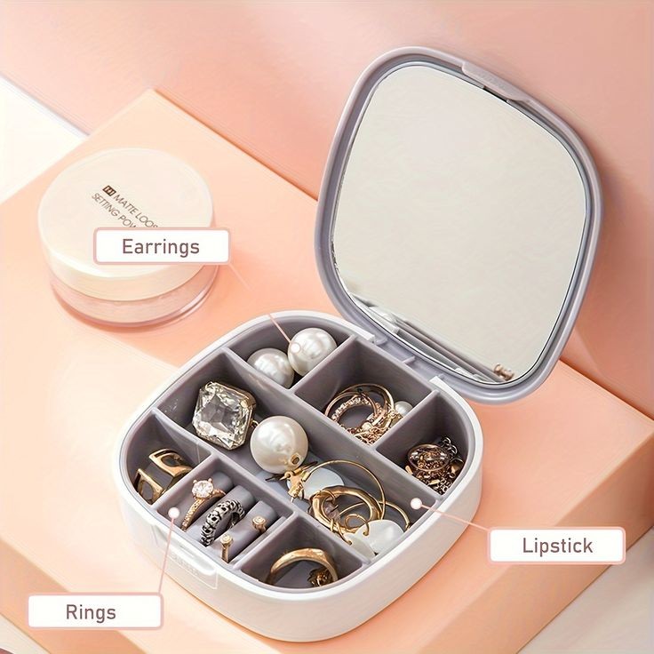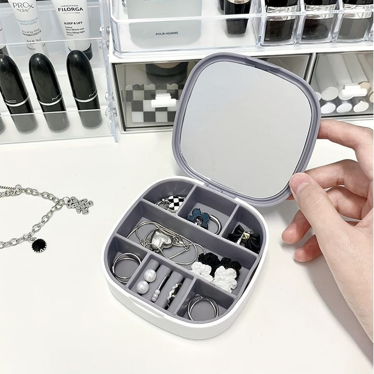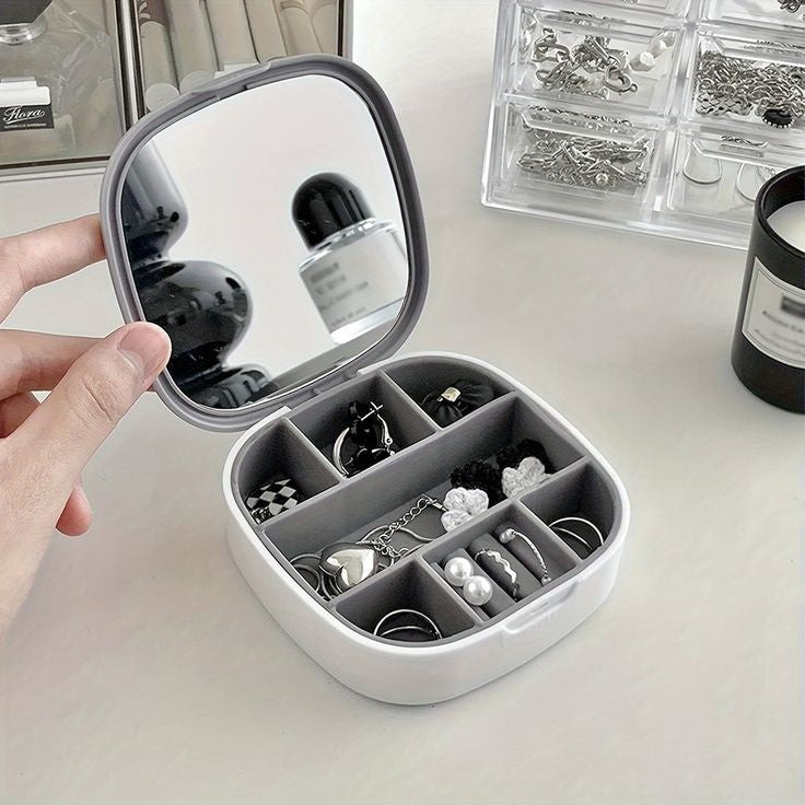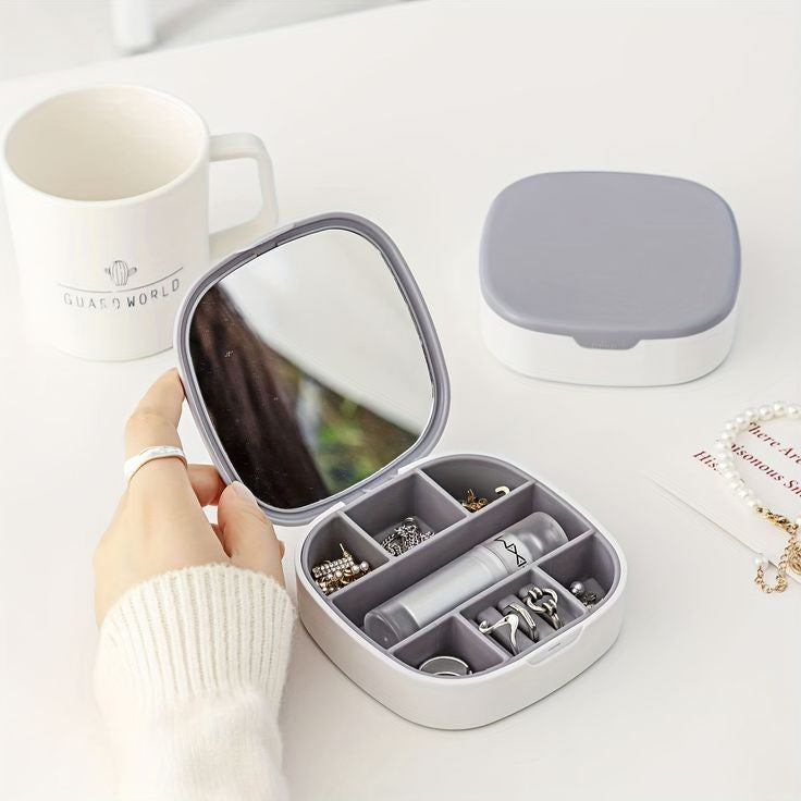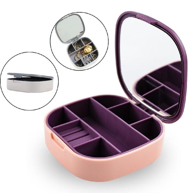Keep your jewelry safe and organized wherever you go with our Portable Mini Jewelry Organizer Box with Mirror! Designed for women on the move, this compact travel case combines style, functionality, and durability. The waterproof plastic exterior and soft silicone interior protect your accessories from oxidation and damage. Its smart design features an integrated mirror, safety buckle, and multiple compartments to store all your favorite pieces effortlessly.