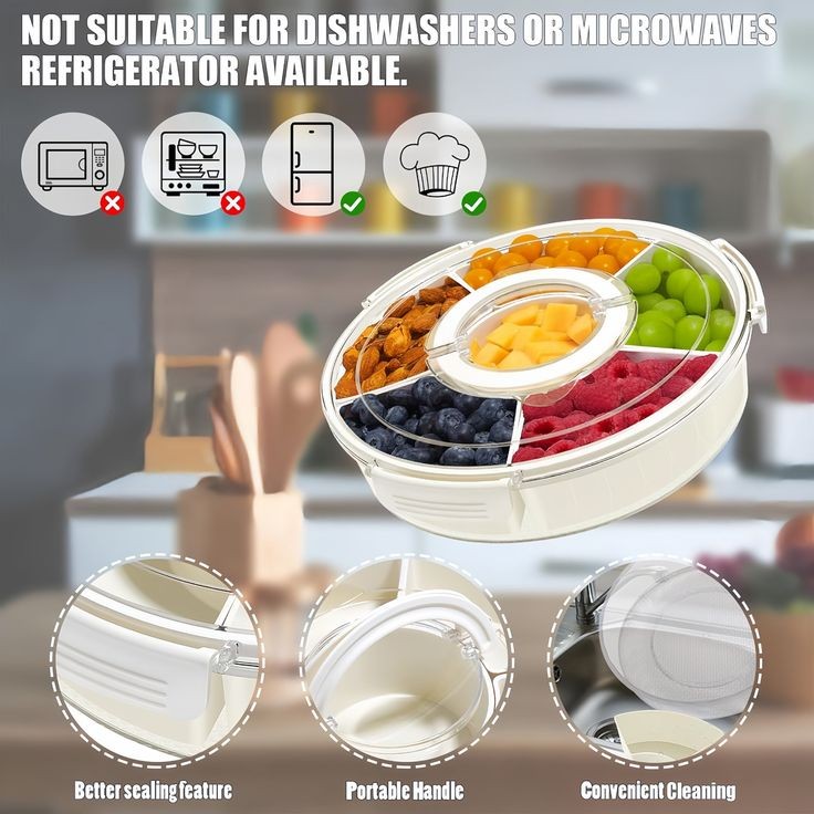 ☎ MUST-HAVE : This divided serving tray with lid is perfect for parties and gatherings and is a must-have for indoor and outdoor events. Its versatility allows you to store sweets, snacks, fruits and more, making it a versatile use in various environments, including picnics and travel.