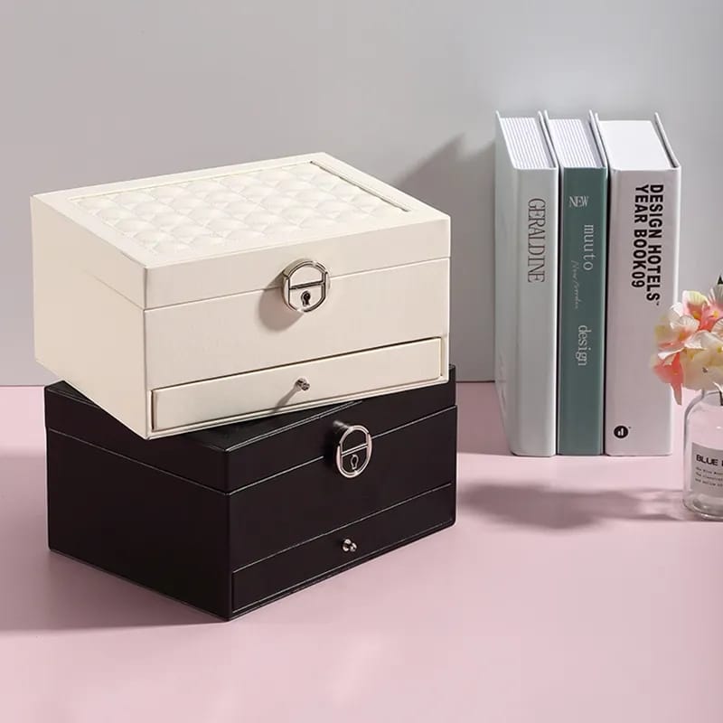 Appearance: Three-layers Large PU Leather Drawer Jewelry Organizer Box