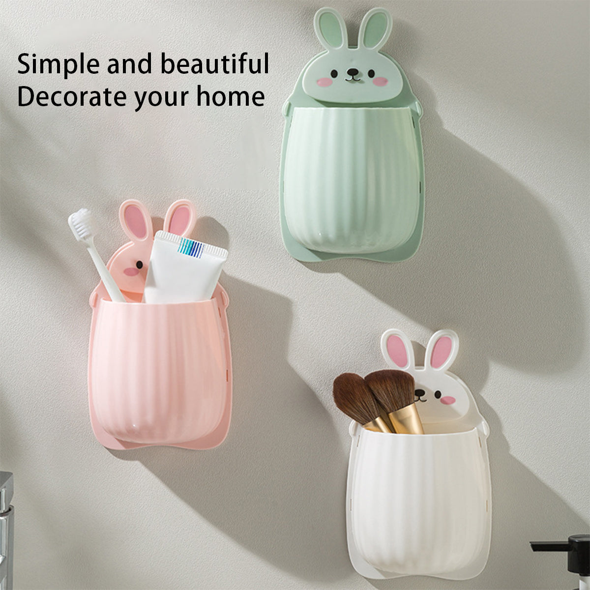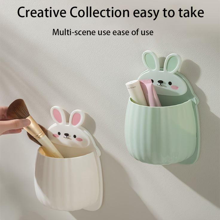 Punch-free Bear Rack Bathroom Wall-mounted Toothbrush Storage Draining Rack Household Bedside Items Storage Box
