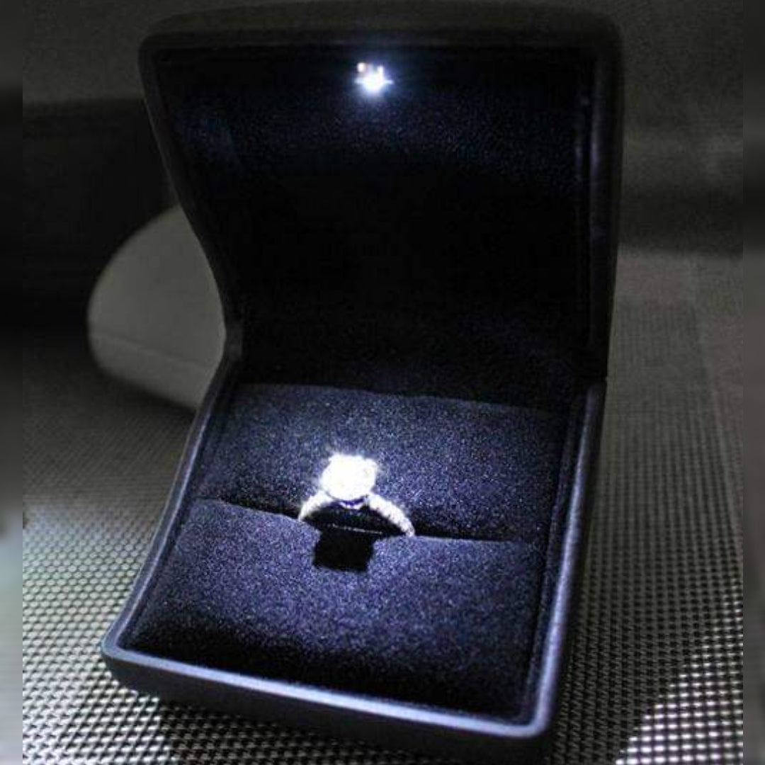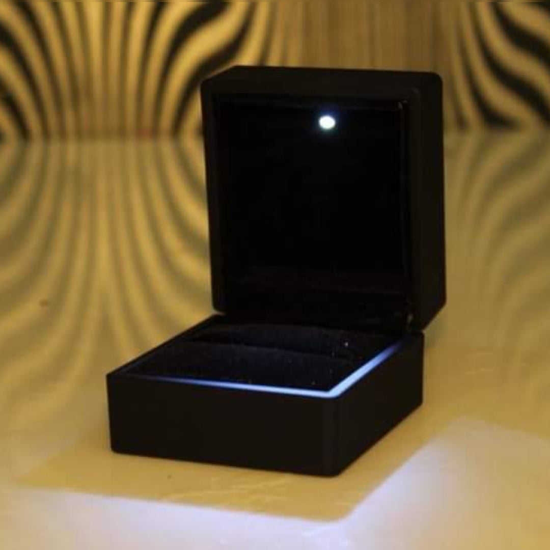 Ring box with led light. When the box will open the led light will turn on automatically. 3 color boxes are available Silver, Black, Golden.