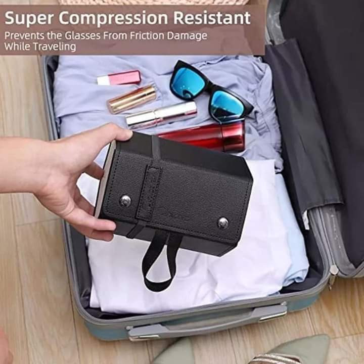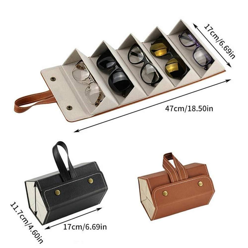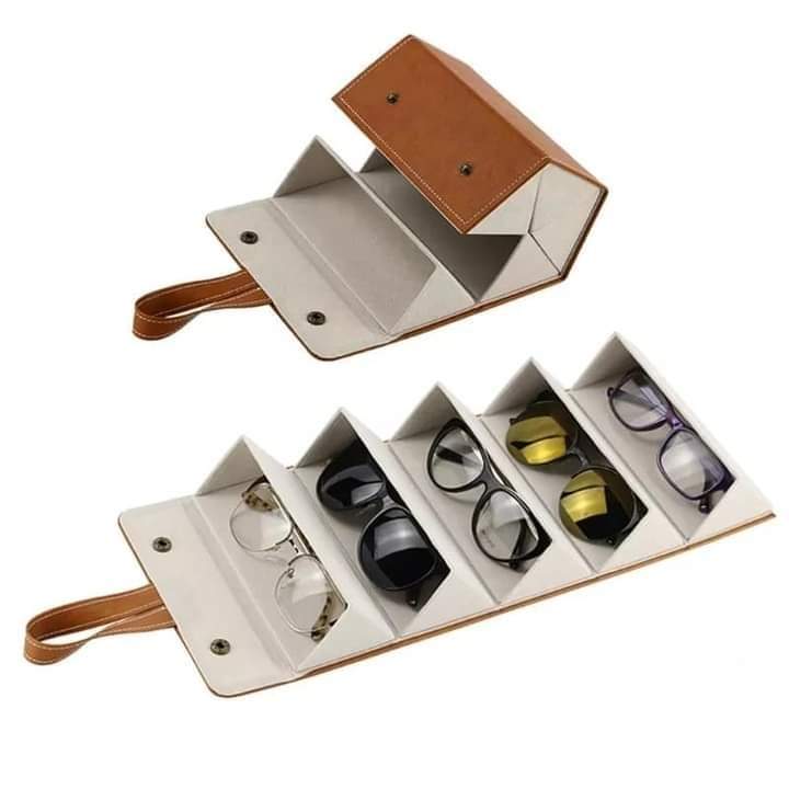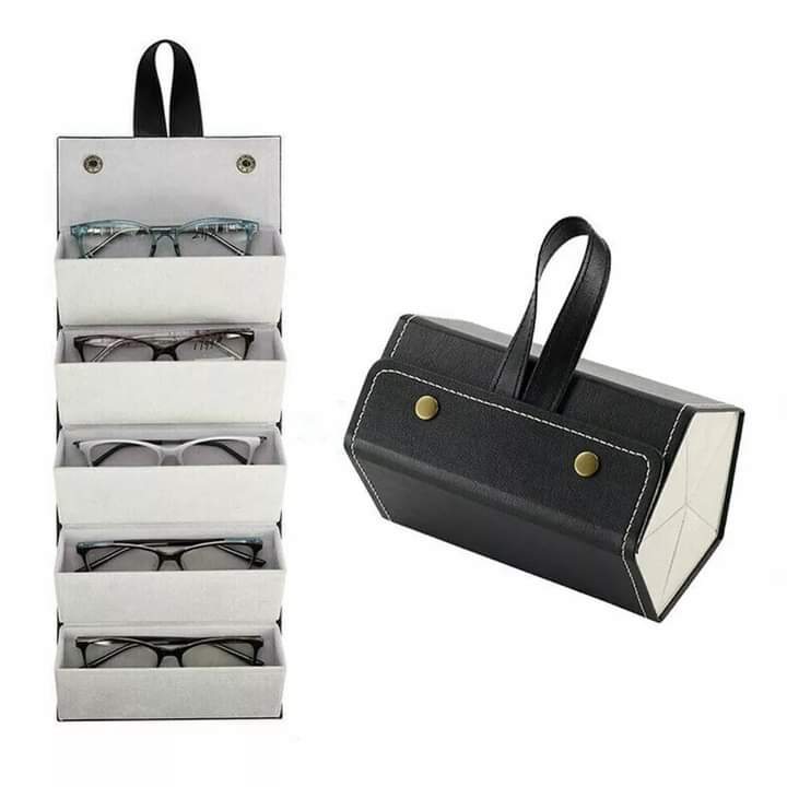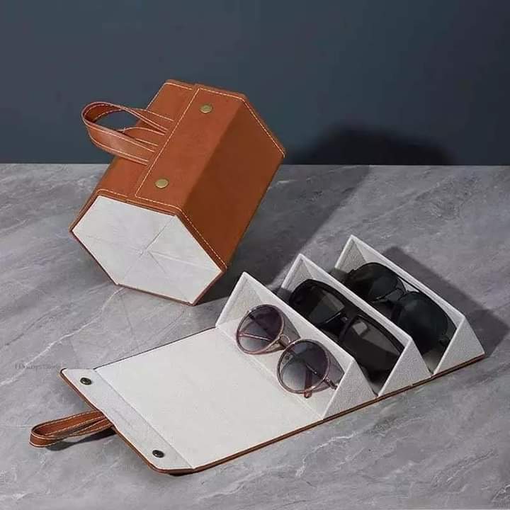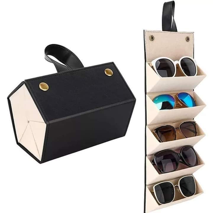 Our unique sunglasses case is the best place to store your glasses, It has multiple slots and a loop on top for a stylish display in any room. It also makes a great travel sunglasses case for a pair of glasses as it rolls up into a pentagonal box.