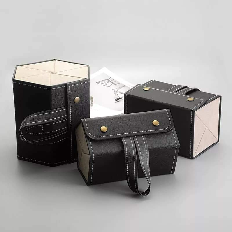 Our sunglasses packaging box adopts a unique folding design,which is durable and protects the content from damage. When rolled up, it has a secure button closure includes velcro attached to each interior compartment to ensure everything stays in place.
