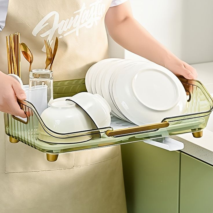 【DRYING RACK FOR KITCHEN COUNTERS】Built-in silverware cup offers ample organization for draining and drying your dishes. With seperate area for cutlery and flatware it holds various dish sizes and can sit in, or out, of the sink.