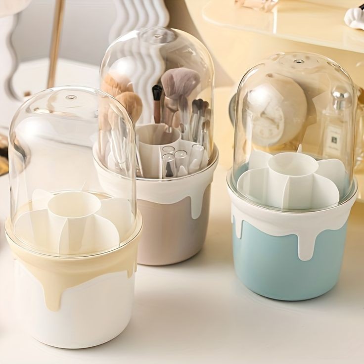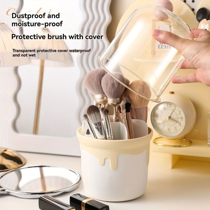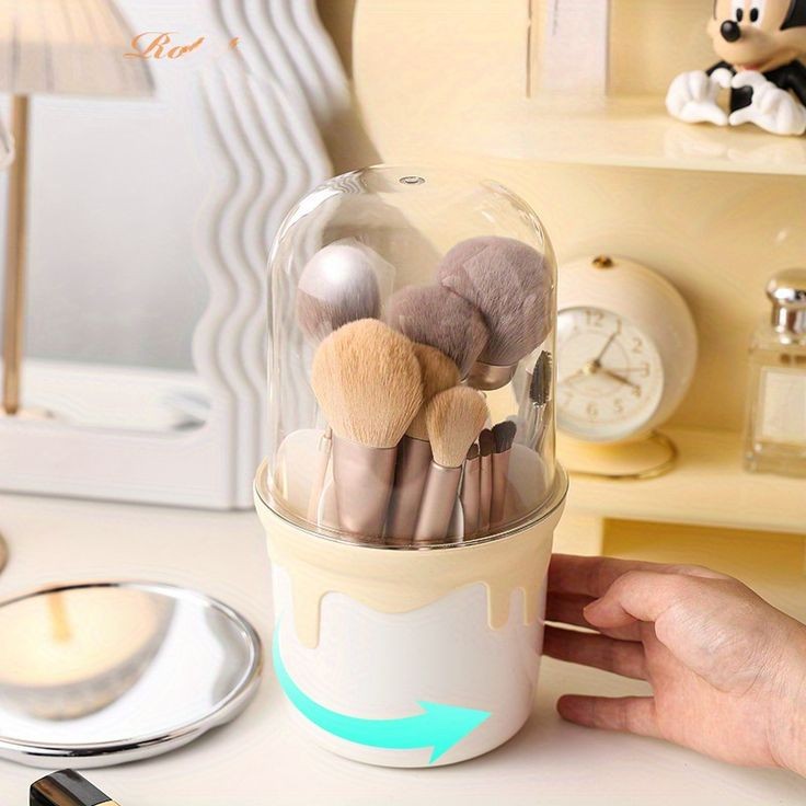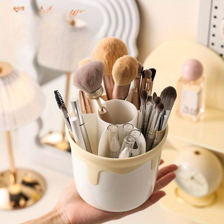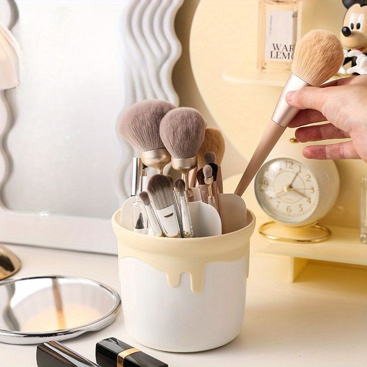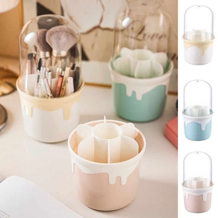 360 Degree Rotatable Spins this brush holder smoothly around without getting stuck, easy to get items from any angle, saving time. Anti slip base ensures its stable placing on the desk. 6 Slots: 6 slots space design to meet your various needs, you can use this to storage short brushes, concealer pen,erasers, tapes, etc. Multipurpose Desktop Organizer: Not only for storage case, it is an organizer for pens, pencils, rulers and other small household items. It is detachable, easy to clean.