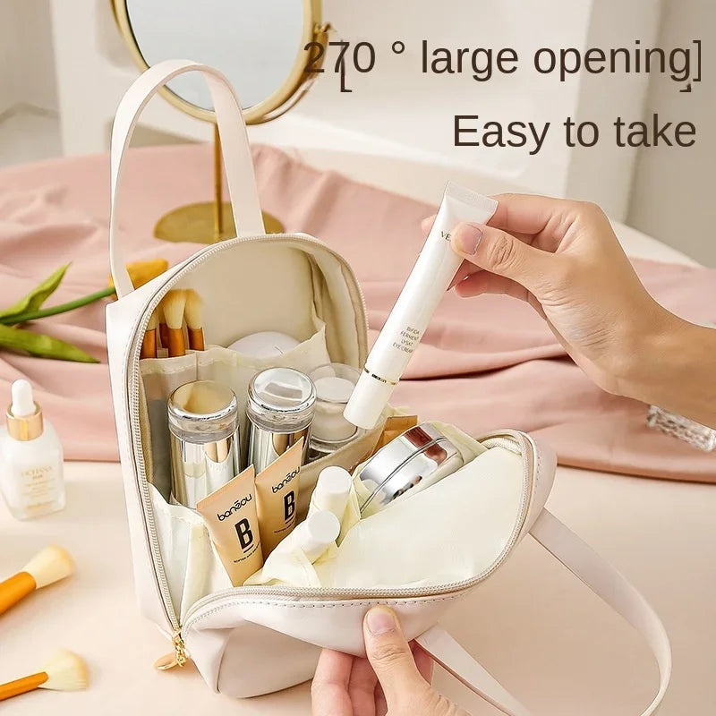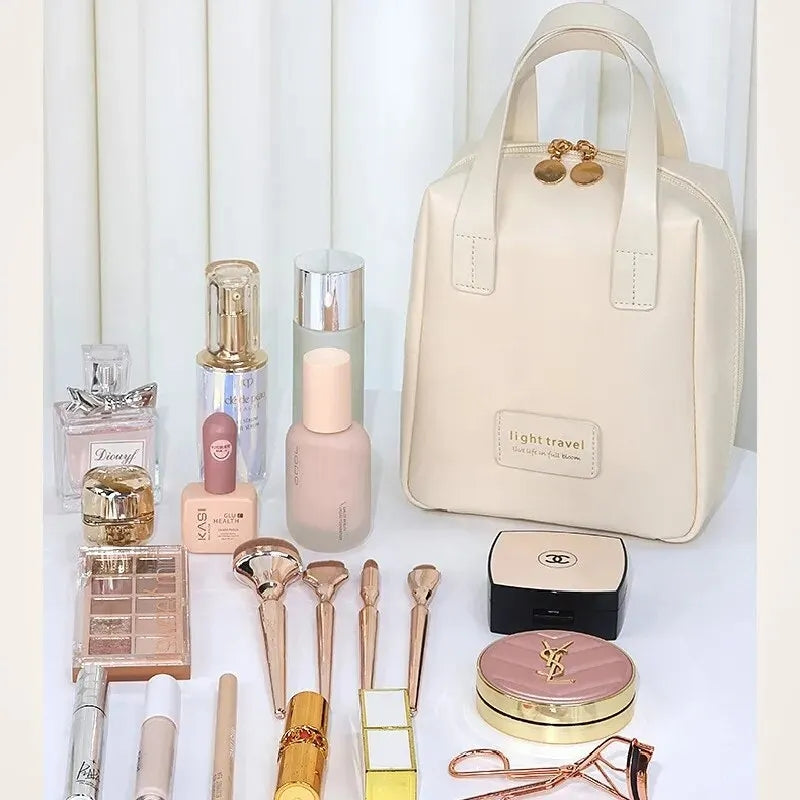 Multipurpose ---- Makeup travel bag with compartments can hold various skin care products and cosmetics, It is very suitable for use at home, hotels, outdoors, on airplanes, and in other places. it's portable and fits easily in luggage, making it perfect for travel and business trips, long or short weekend getaways, or camping trips. look stunning on the go with this sophisticated makeup organizer.