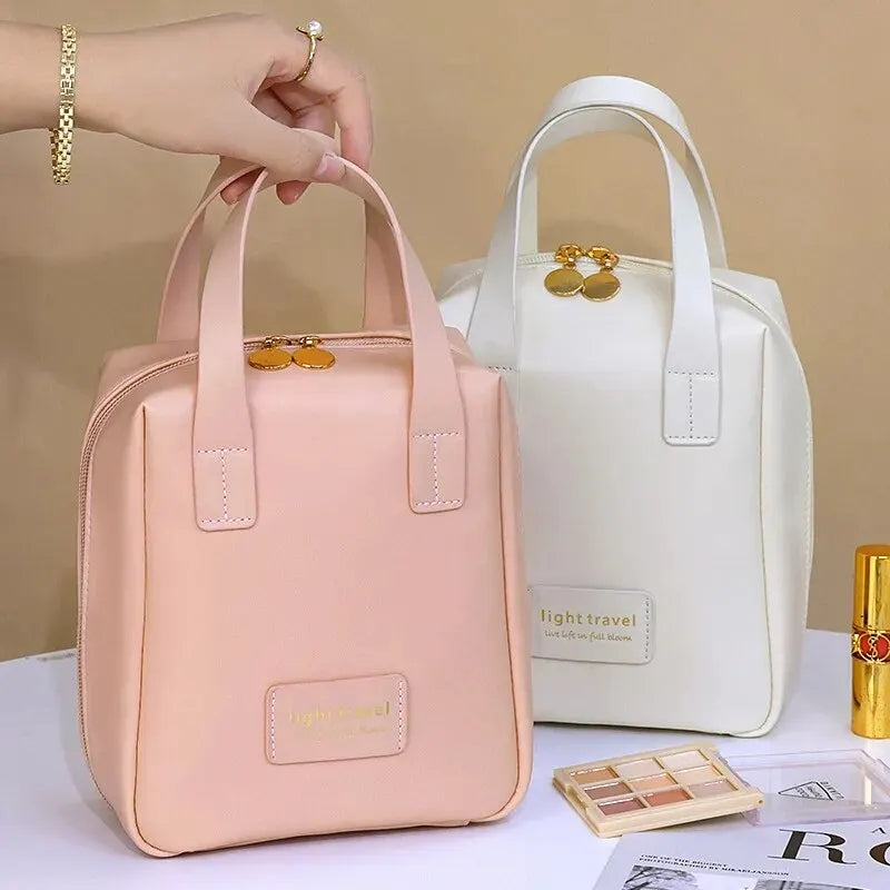 Easy to Clean ---- Travel waterproof toiletry bag is dirt and water-resistant, water droplets won't wet the bag, and makeup residue can be easily wiped off, so you can use it at the sink without worrying about your bag getting wet and dirty.