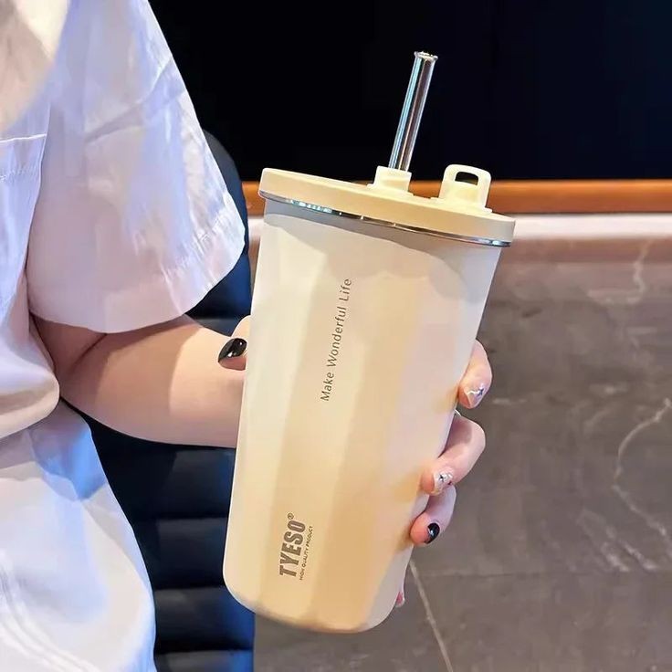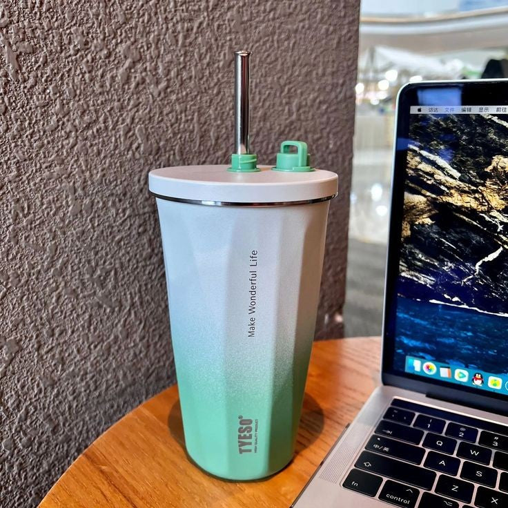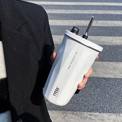 Tyeso Insulated Stainless Steel Coffee Cup With Straw