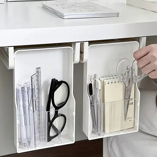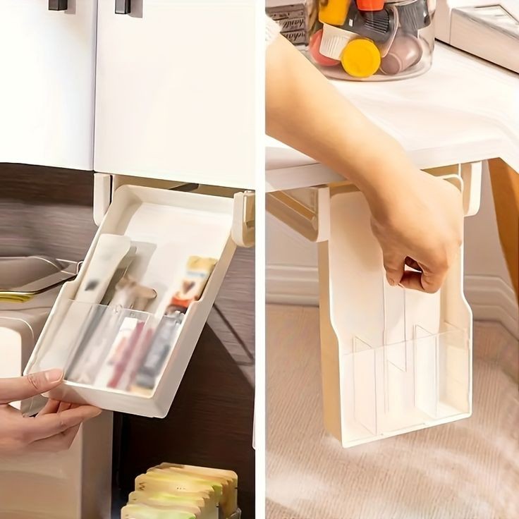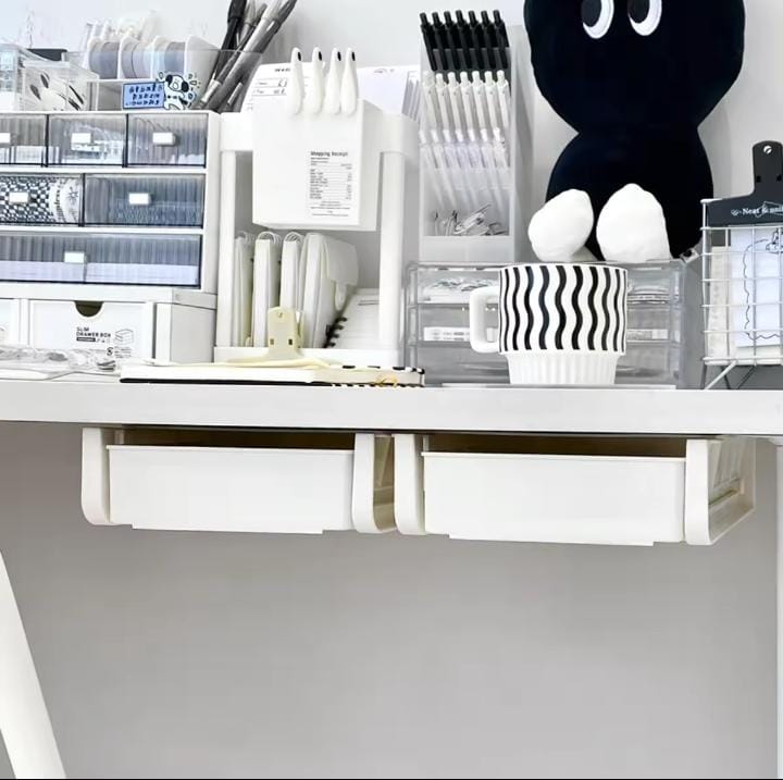 High Quality Material : Under the creative table storage organizer is made of Plastic, which is durable, sturdy, wear-resistant, environmentally friendly. Hidden drawer storage, refuse dust.