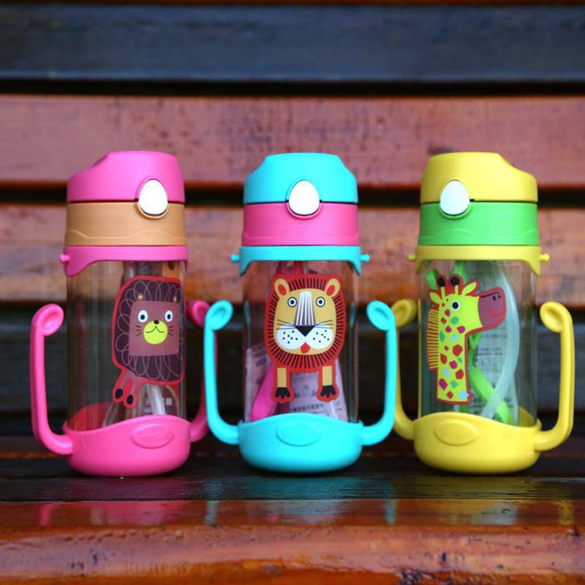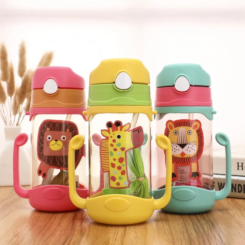 Cartoon Kid Drinking Cup with a Straw Leakproof Portable Rope Children Learn Drinking Bottle Sippy Cup PP Baby Cup