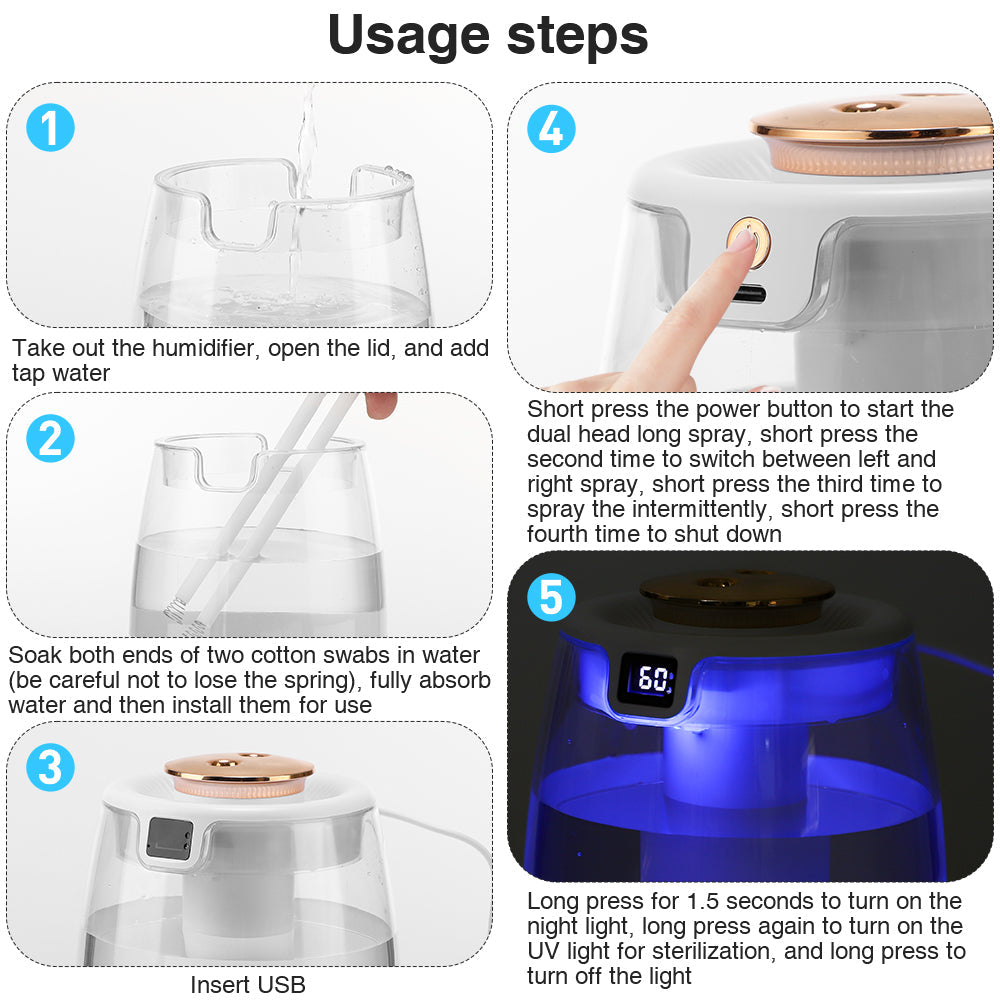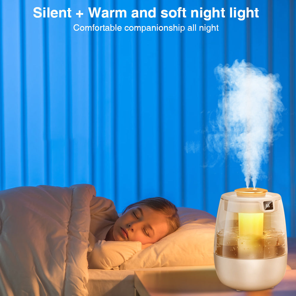 【Double Mouth Mist】: Home large-capacity humidifier adopts innovative double-port design, releasing a super-large amount of mist per hour, quickly boosting indoor humidity.