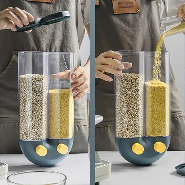 Grain Storage Box Cereal Dispenser Food Tank Wall Mounted 2.5L Plastic Storage Cans