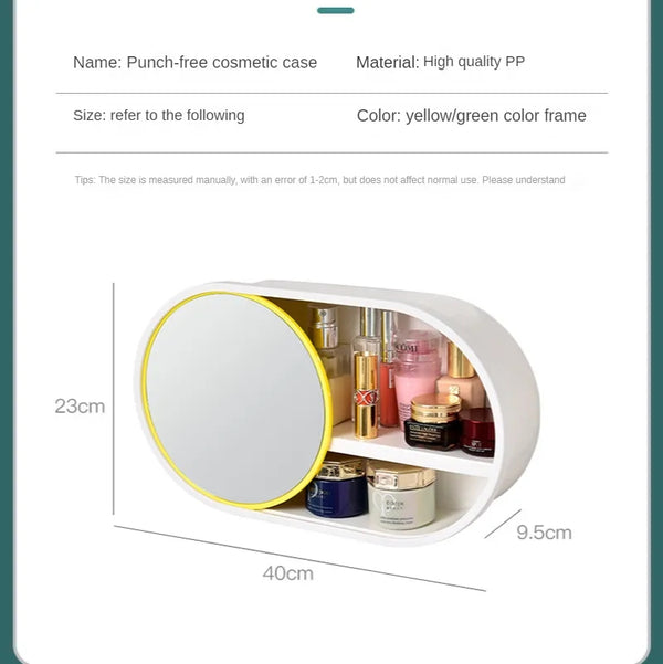 Wall Mounted makeup organizer with mirror. Moveable mirror and Easy to install on wall.