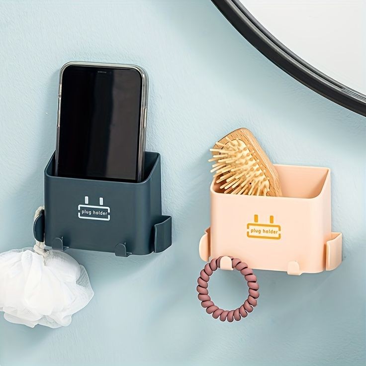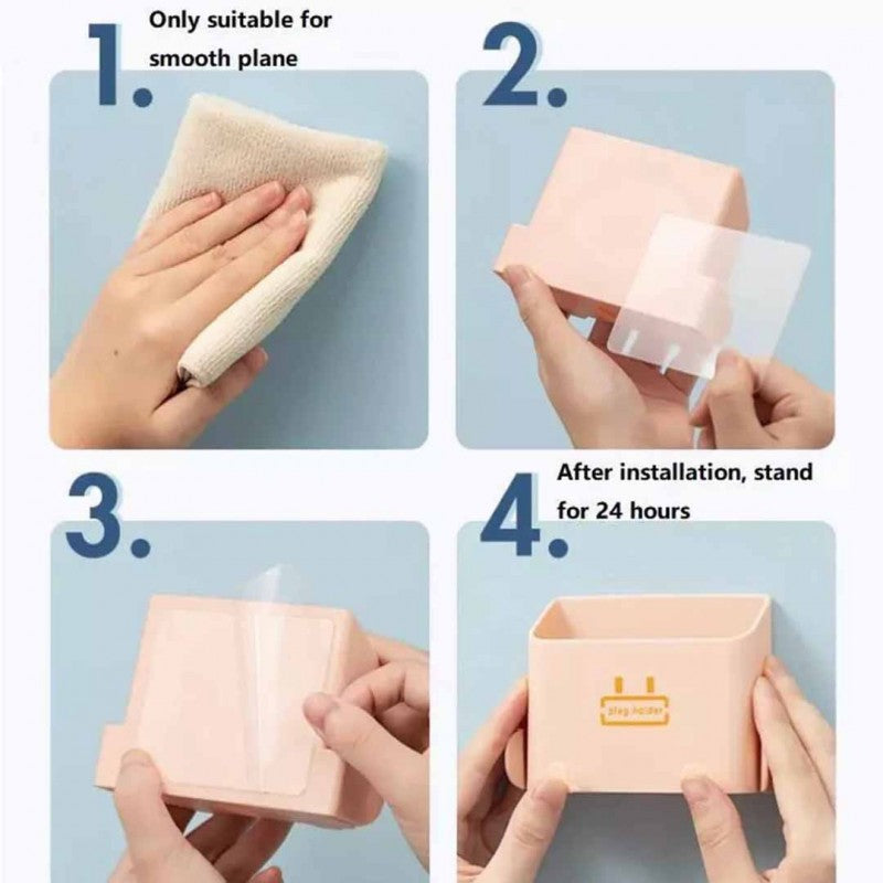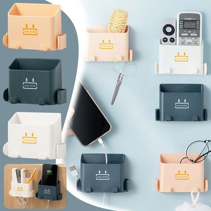 Our wall-mounted mobile storage box is made of plastic materials, which are light in weight, strong and durable. This wall-mounted charger storage hook adopts self-adhesive design with sticker paper.