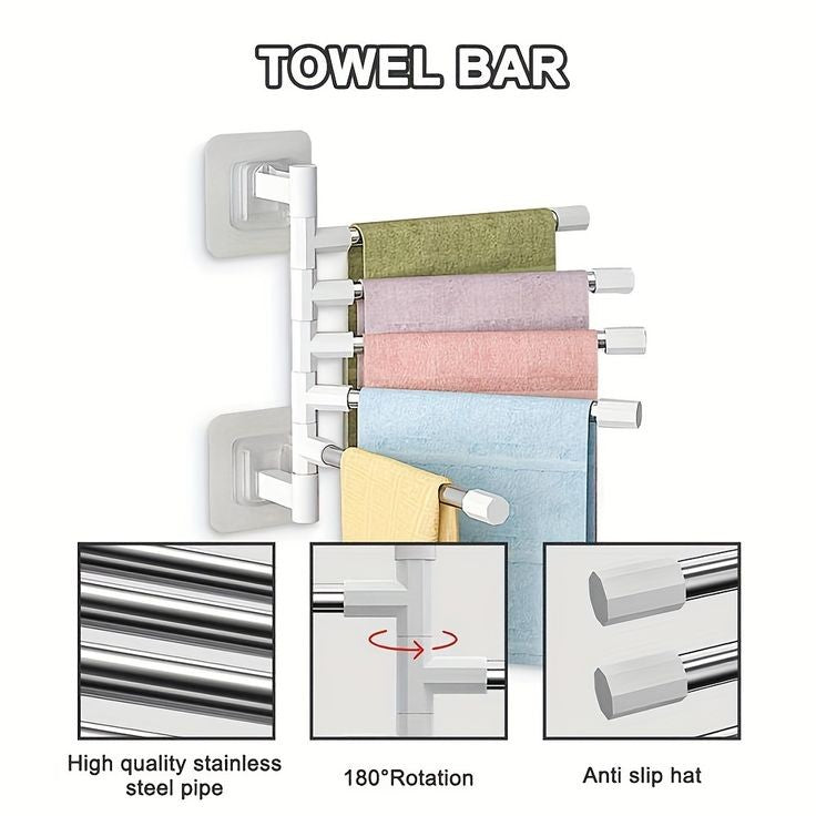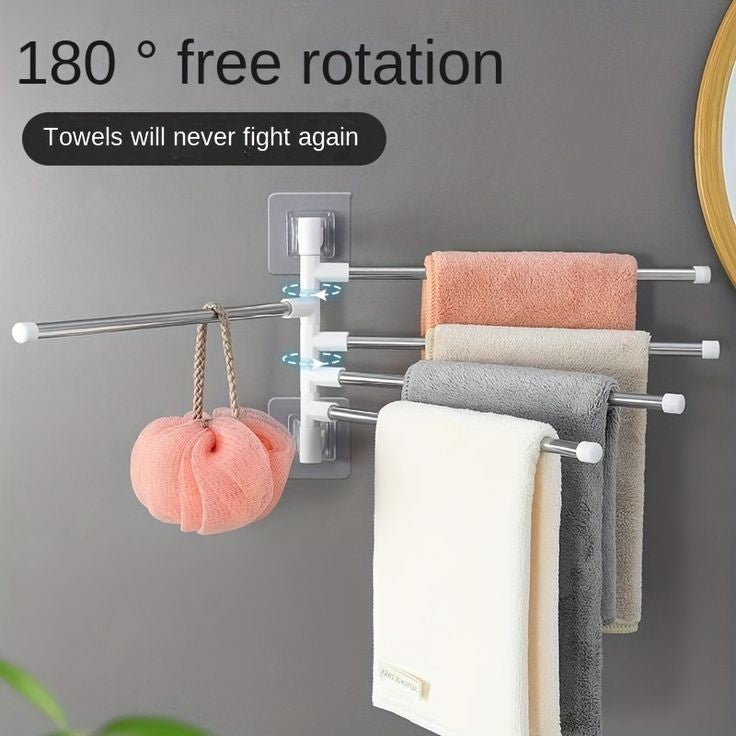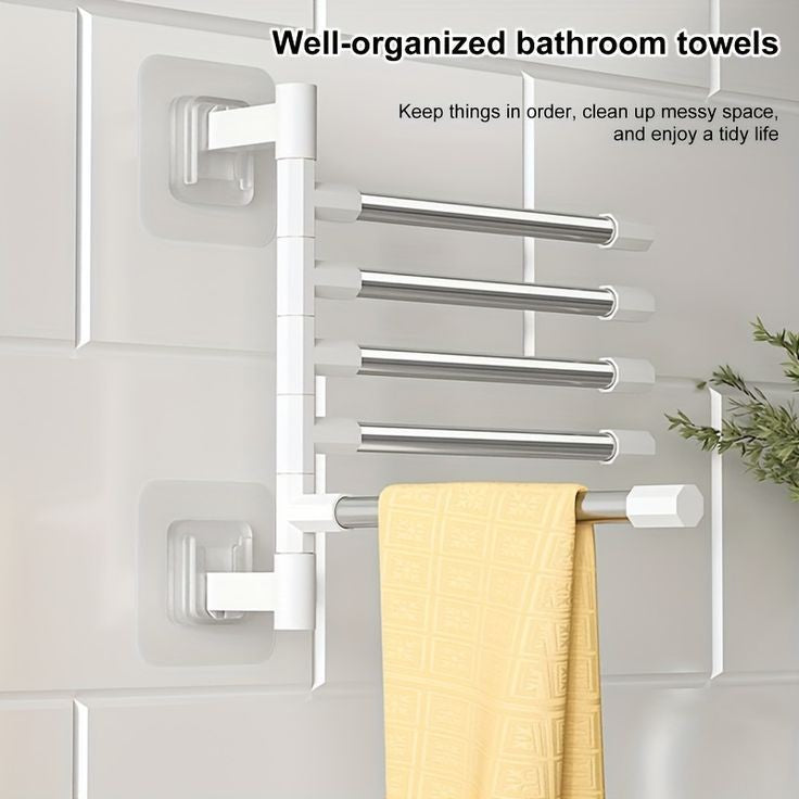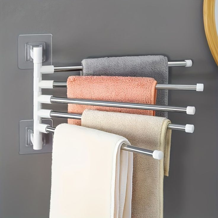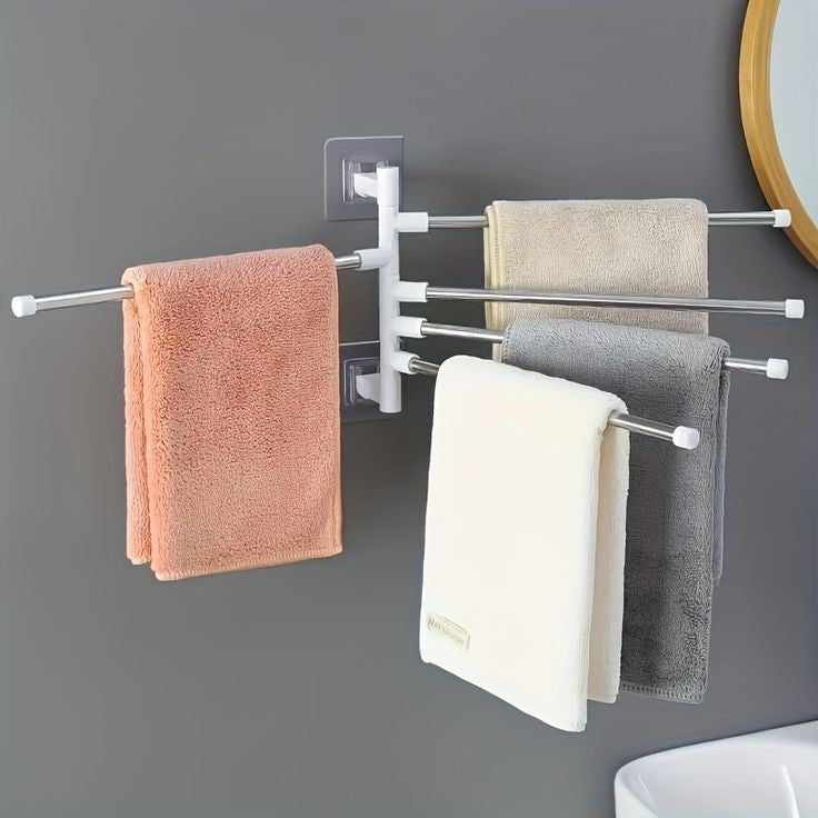ROTATES 180°- Multiple swivel arms of towel racks allows you to spread out the desired arms for easy drying, and swivel them back against the wall to save space..