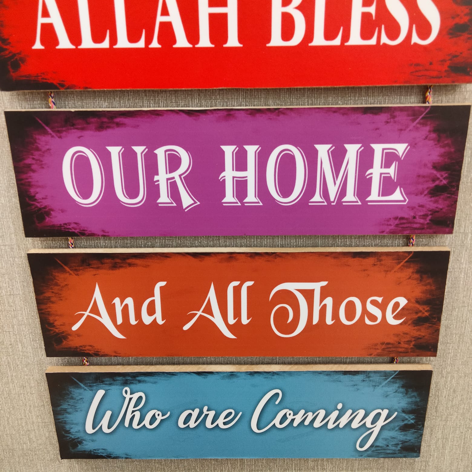 Transform your home into a peaceful sanctuary with our Welcome to our home Allah bless Wall hanging. This beautifully crafted wall decoration features an inspiring quote and serves as a daily reminder of Allah's blessings. Elevate your home decor with this spiritual touch.